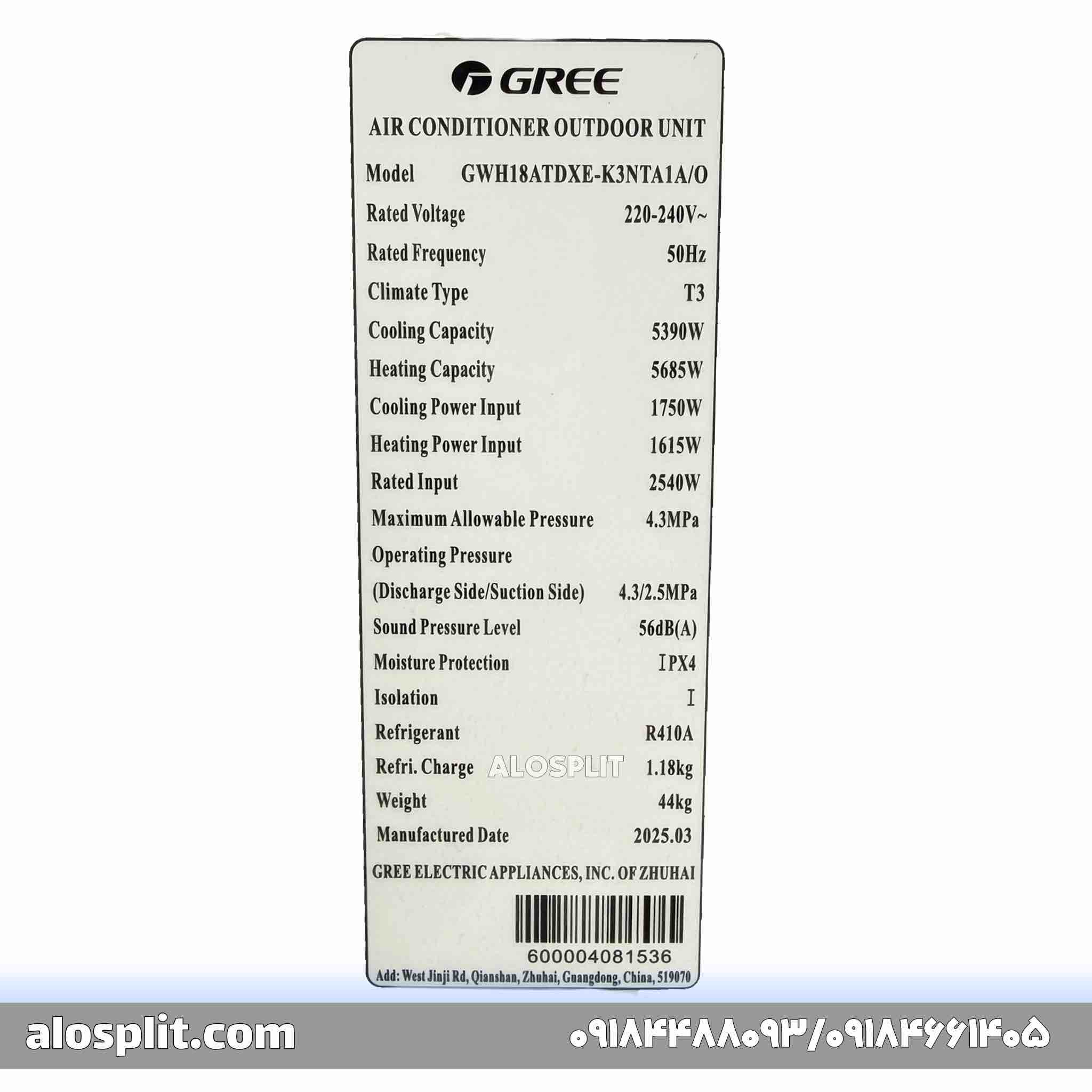 کولر گازی گری 18000مدل GWH18ATDXE-K3NTA1A/O
