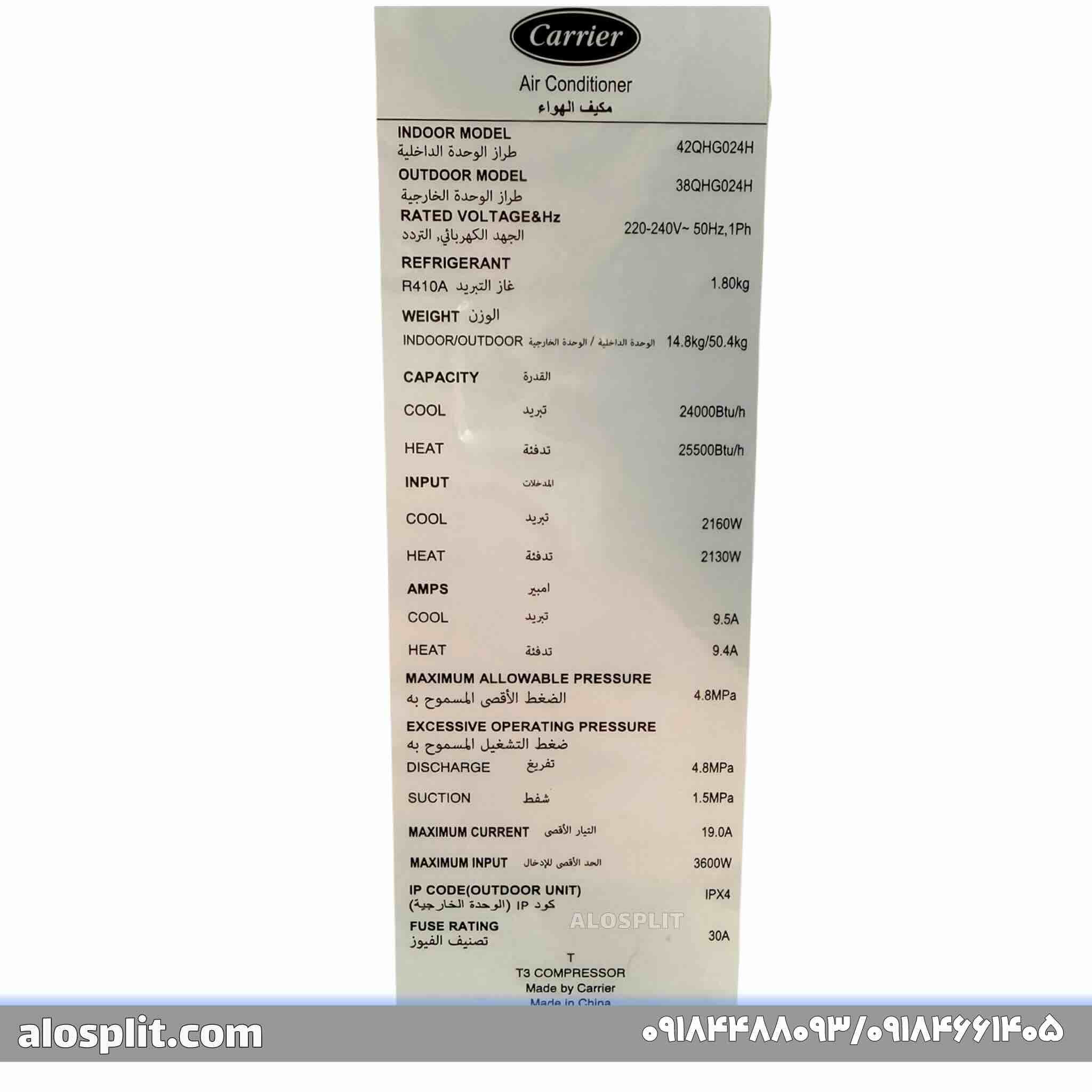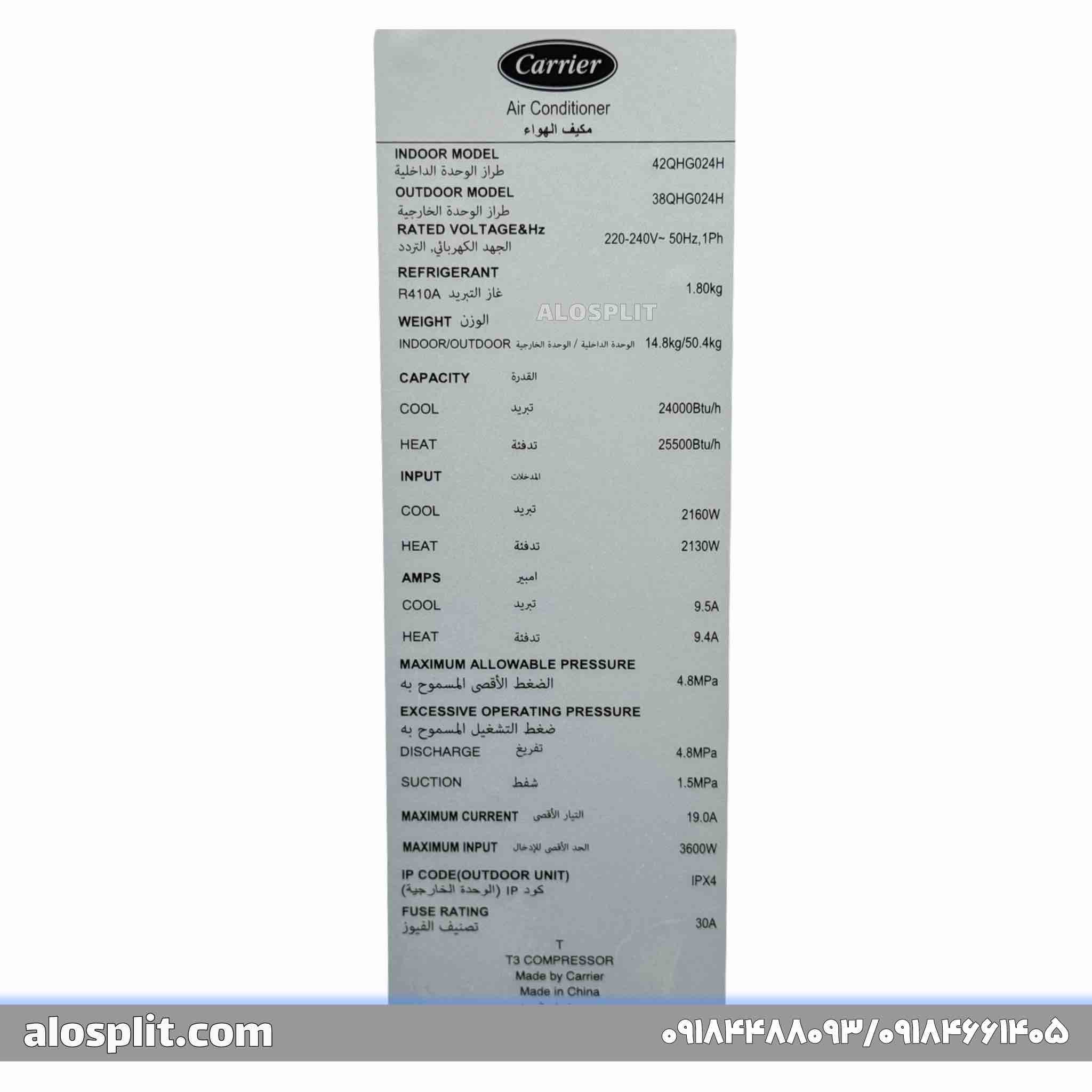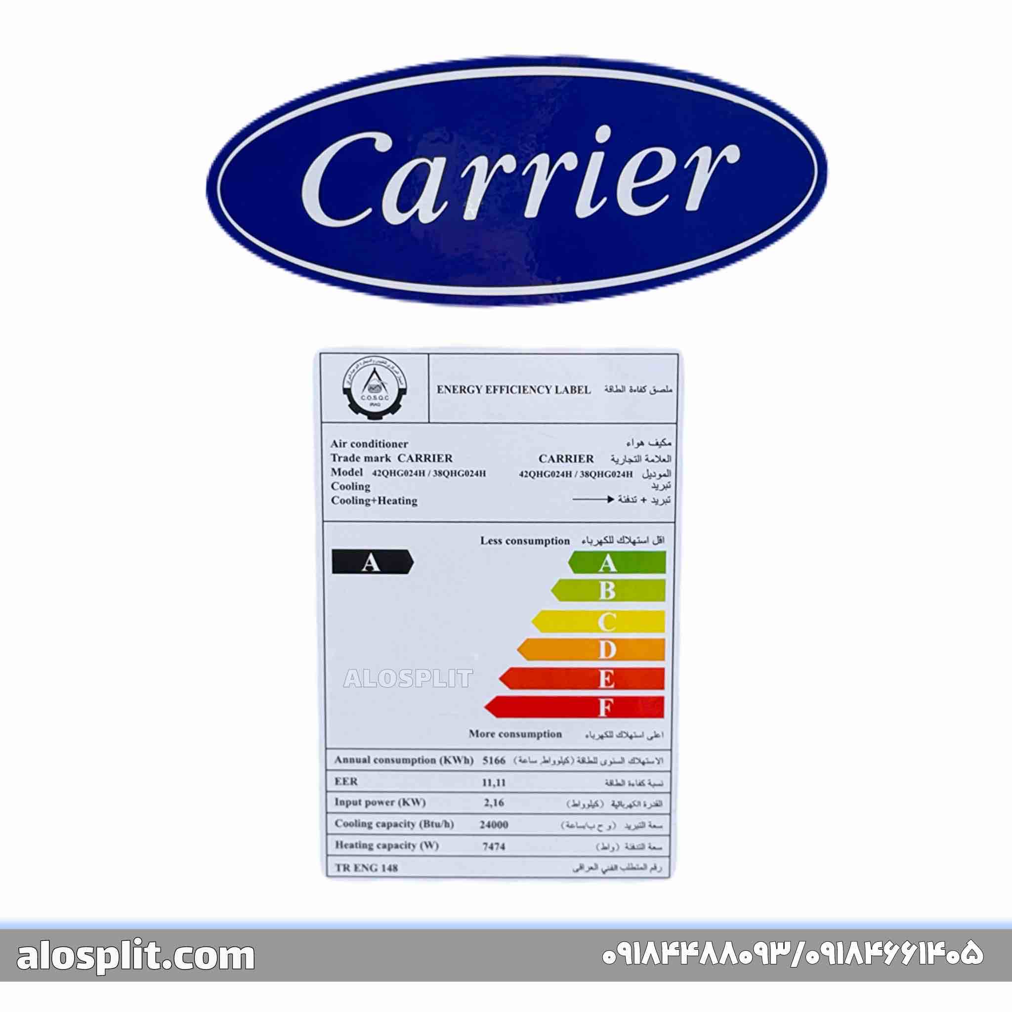 کولر گازی کریر 24000 معمولی QHG ، مدل 42QHG024H – 38QHG024H